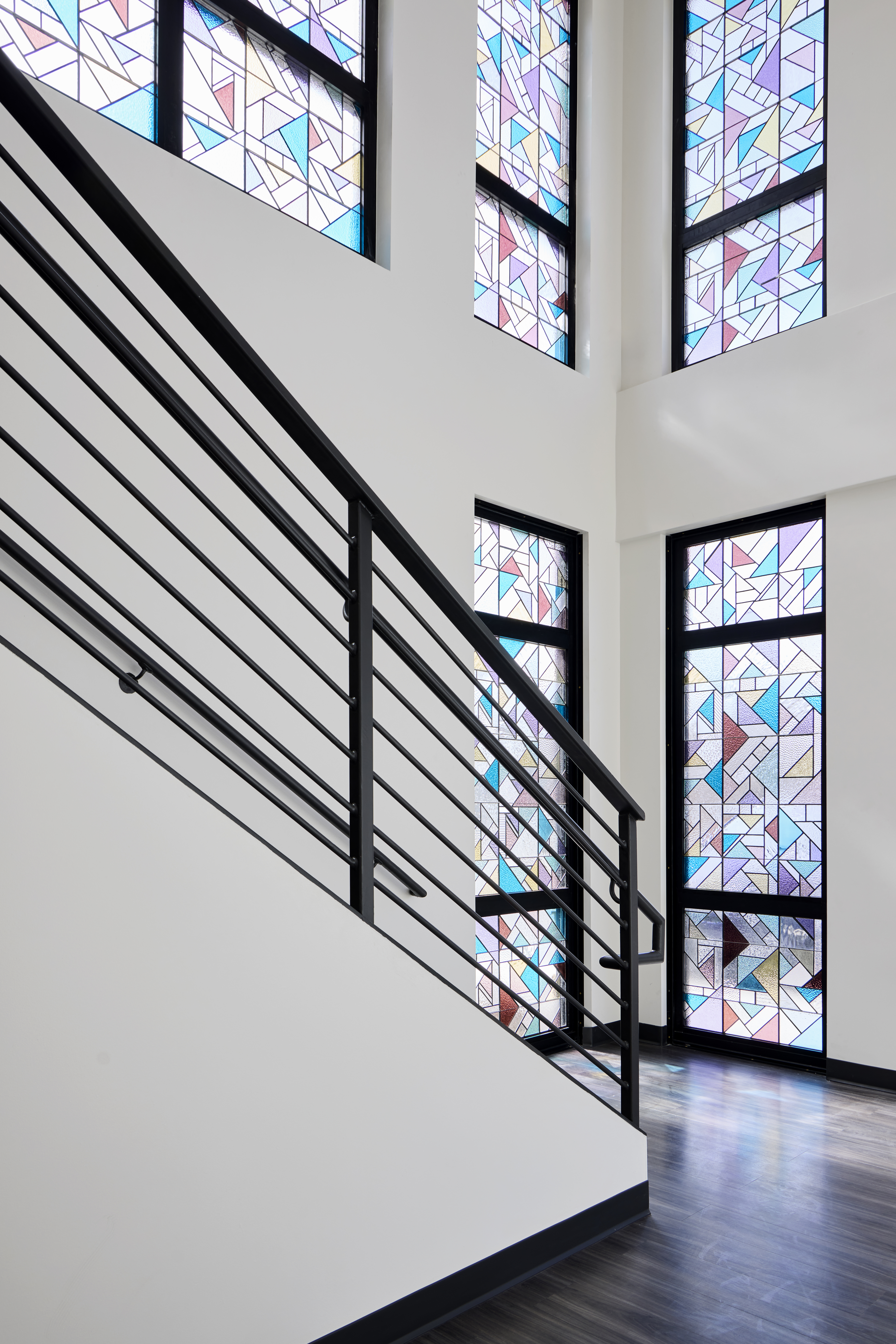 Inspired by traditional cloister forms, the design integrates elements such as stained glass and a prayer labyrinth to reflect the seminary’s history and mission. In addition to residential spaces, the facility includes a conference center capable of hosting lectures and events, as well as dedicated office space for the seminary’s advancement team, creating a cohesive environment that supports both community and institutional functions on campus.