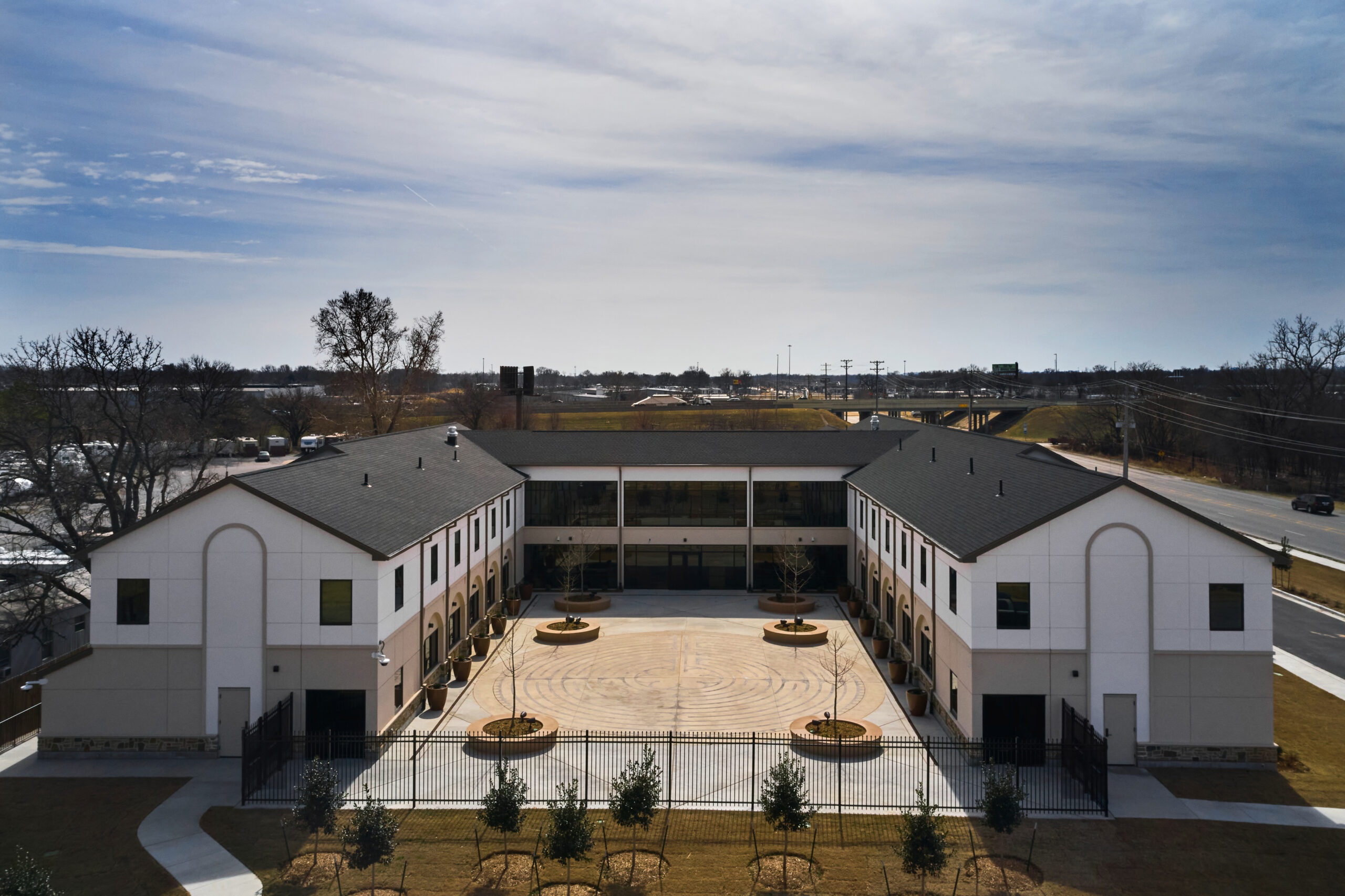 Bedford House at Phillips Theological Seminary is designed to support student life, community, and academic engagement through a residential and gathering environment that fosters connection among students. The 29,445 SF facility includes 25 residential rooms and two one-bedroom apartments for longer stays, and emphasizes shared experiences through thoughtfully designed communal spaces, including a central courtyard, a large kitchen for shared meals, and flexible gathering areas that encourage interaction and relationship-building.