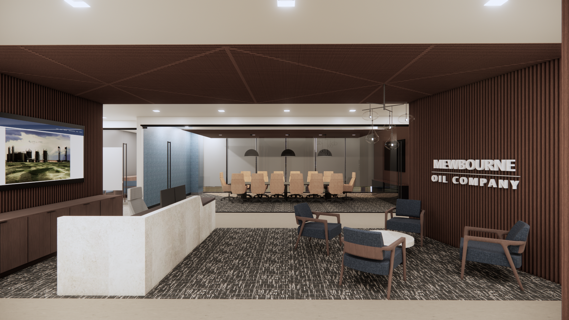 The design draws inspiration from the oil and gas industry, using materiality and form to reflect the client’s identity while supporting functional workflows. The space is planned to accommodate both individual work and collaboration, with flexibility to support evolving operational needs.